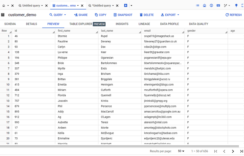table_schema = "id:STRING, first_name:STRING, last_name:STRING, email:STRING, gender:STRING, age:integer"