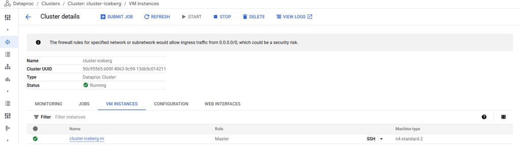 - โดยหลังจากได้สร้าง Dataproc แล้วให้ SSH เพื่อเข้าไปใช้งานในส่วนของ spark กัน