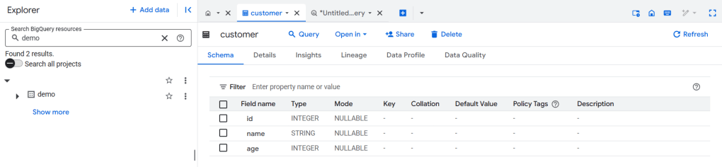 CREATE TABLE bq_catalog.demo.customer (